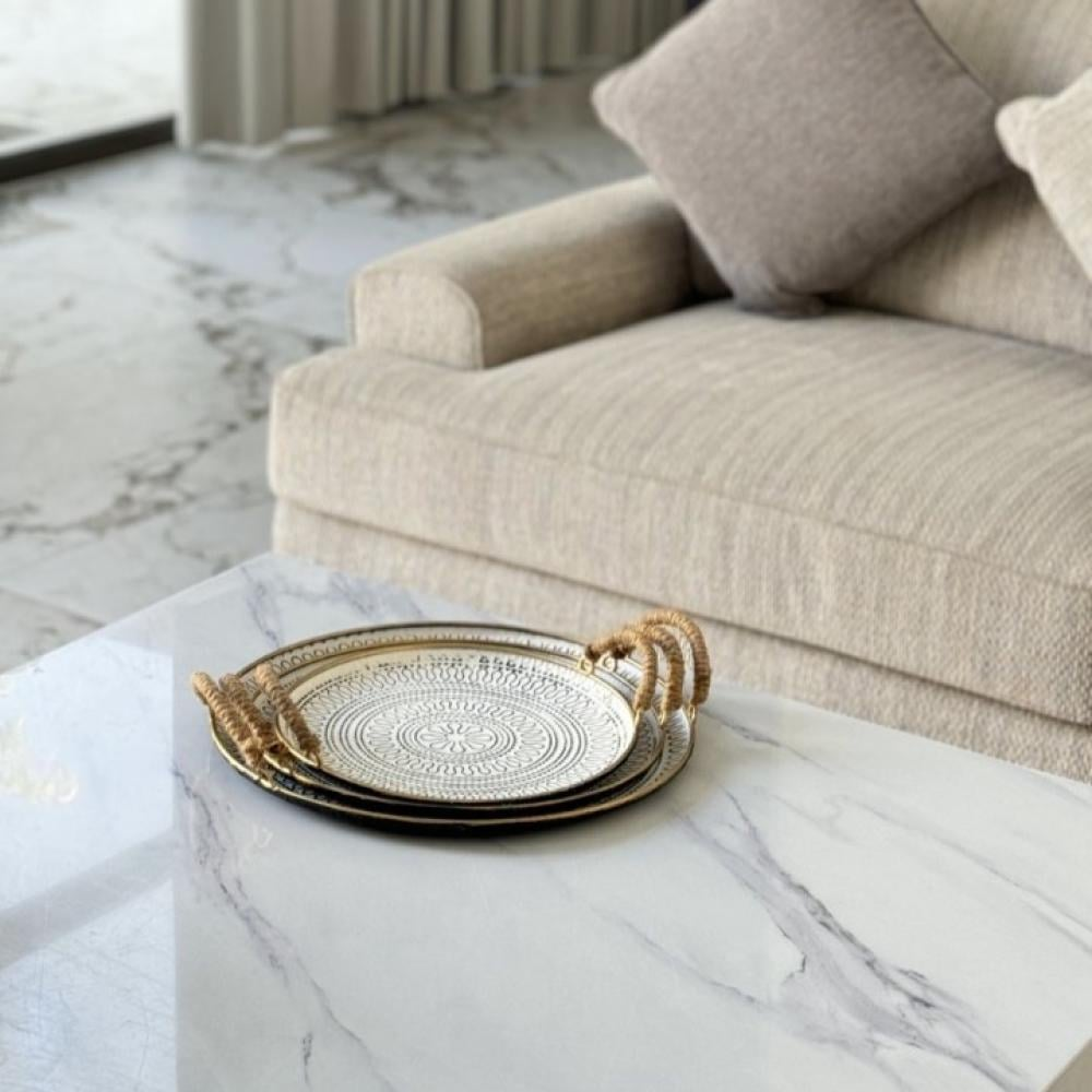 اقتني الآن صينية معدن الفاخرة ضمن افضل عروض اليوم الوطني 95 واجعل تقديمك أكثر تميزاً من خلال متجر My Happy Home حيث تجد أجمل أطقم تقديم الطعام التي تضيف لمسة فريدة لكل مناسبة